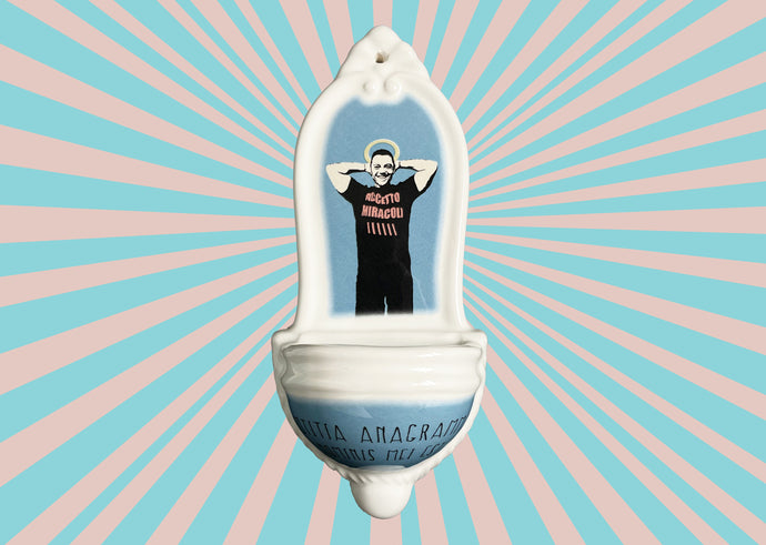 Acquasantiere artigianali realizzate e smaltate a mano.